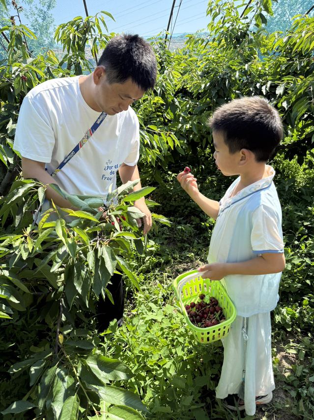 为迎接2025年“六一”国际儿童节,营造温馨和谐的亲子氛围,大陆娱乐城 工会于5月30日组织开展“亲子采摘乐,和谐共成长”活动。20余名教职工及小朋友们来到位于沙湾县乌兰乌苏镇兰翔农业专业合作社樱桃园,在樱桃采摘的劳动收获中,共度一段融合自然体验和劳动教育的亲子时光。