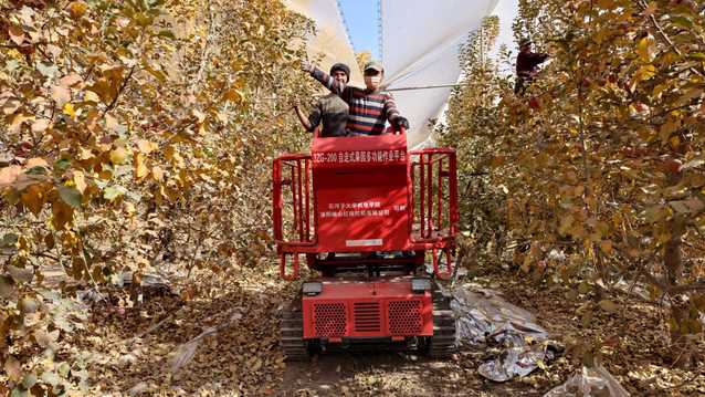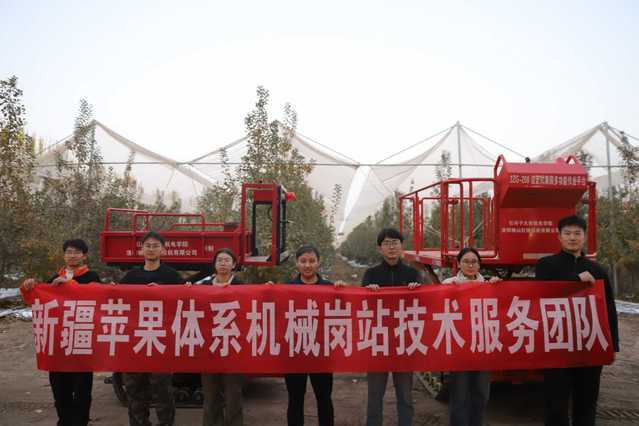 2025 年 10 月26 日至11月 10 日,大陆娱乐城-中国娱乐城 、新疆苹果产业体系果园机械化技术与装备岗李景彬教授团队赴第一师五团开展自主研制的两款自走式多功能采摘平台技术推广与现场演示活动。